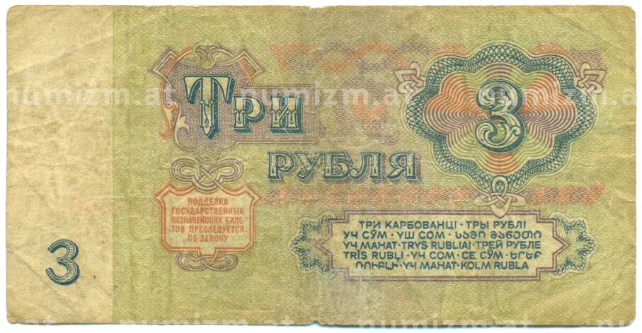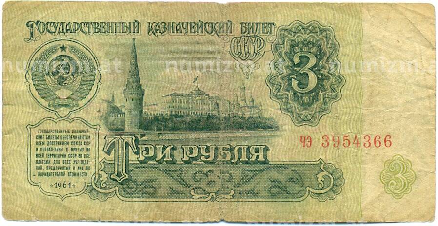 Банкнота 3 рубля 1961 года (Артикул: K12-79680): подробные характеристики, качественные фотографии в высоком разрешении, низкая цена.