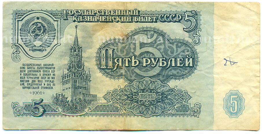 Банкнота 5 рублей 1961 года [Артикул: K12-79682]