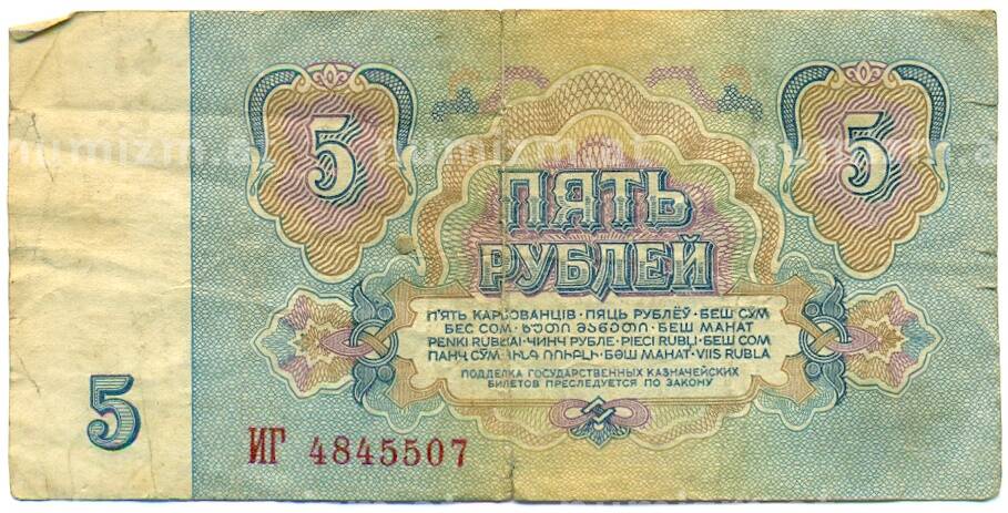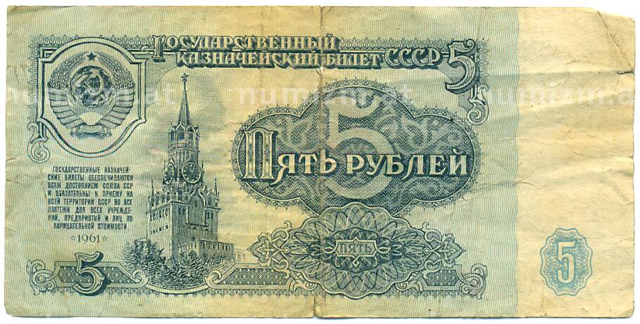 Банкнота 5 рублей 1961 года (Артикул: K12-79683): подробные характеристики, качественные фотографии в высоком разрешении, низкая цена.