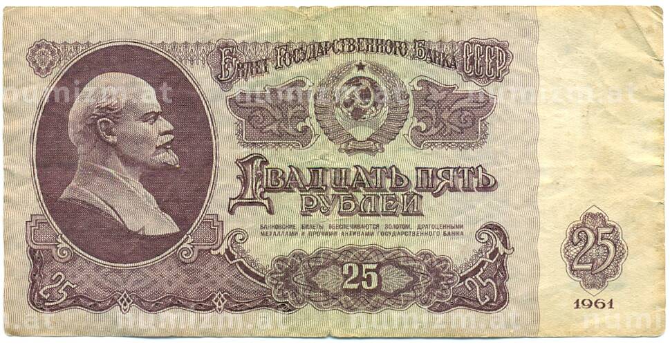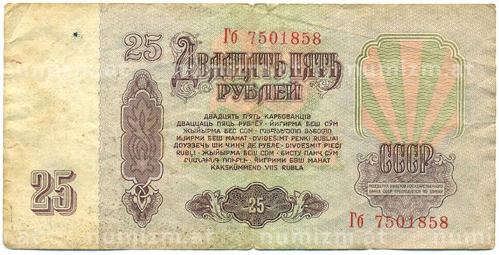 Банкнота 25 рублей 1961 года (Артикул: K12-79690): подробные характеристики, качественные фотографии в высоком разрешении, низкая цена.
