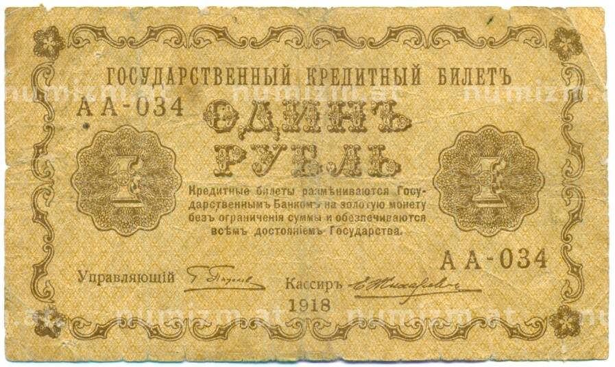 20.01.2025Интернет магазин «Нумизмат» предлагает приобрести 1 рубль 1918 года.