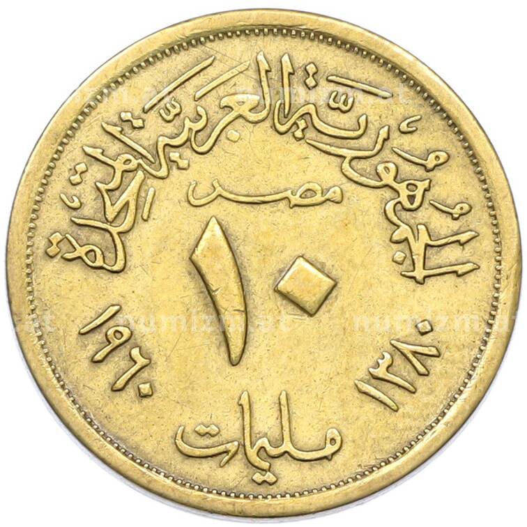 Монета 10 миллим 1960 года Египет (Артикул: K12-79831): подробные характеристики, качественные фотографии в высоком разрешении, низкая цена.