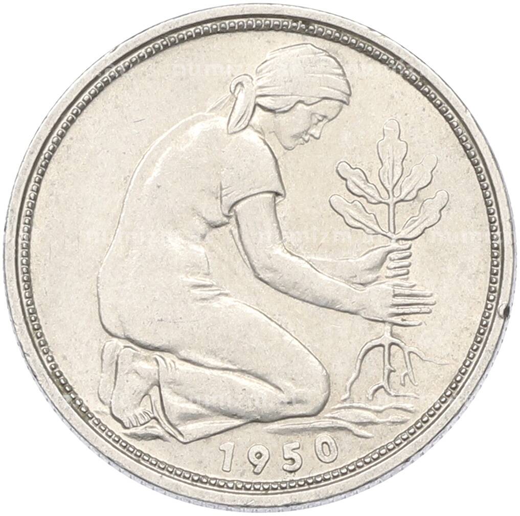 Купить 50 пфеннигов 1950 года D Западная Германия (ФРГ) по привлекательной цене можно в нашем интернет-магазине — Вам достаточно оформить заказ на сайте. Все монеты, представленные в каталоге, находятся в наличии на нашем складе.