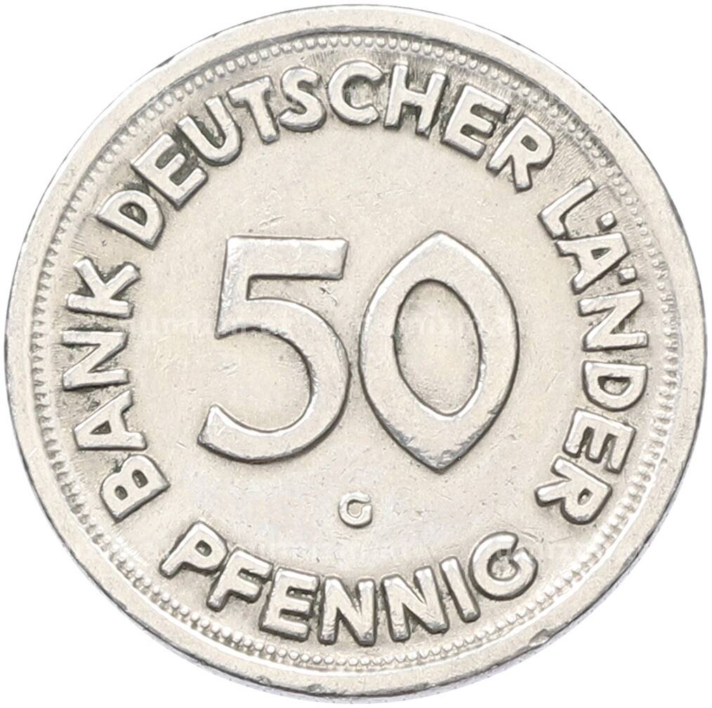 Купить 50 пфеннигов 1949 года G Западная Германия (ФРГ) по привлекательной цене можно в нашем интернет-магазине — Вам достаточно оформить заказ на сайте. Все монеты, представленные в каталоге, находятся в наличии на нашем складе.