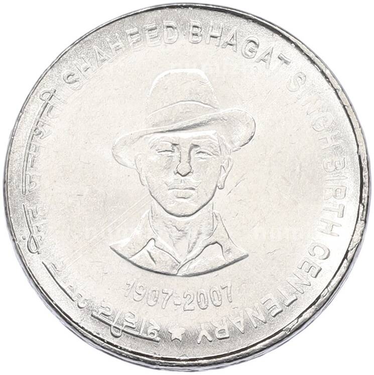 Купить 5 рупий 2007 года Индия «100 лет со дня рождения Бхагат Сингха» по привлекательной цене можно в нашем интернет-магазине — Вам достаточно оформить заказ на сайте. Все монеты, представленные в каталоге, находятся в наличии на нашем складе.