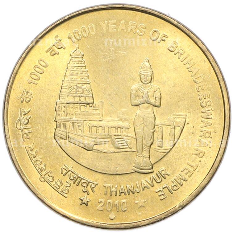 Купить 5 рупий 2010 года Индия «1000 лет храму Брихадишварар» по привлекательной цене можно в нашем интернет-магазине — Вам достаточно оформить заказ на сайте. Все монеты, представленные в каталоге, находятся в наличии на нашем складе.