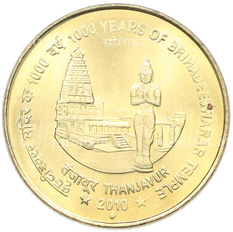 Монета 5 рупий 2010 года Индия «1000 лет храму Брихадишварар» (Артикул: K12-80323): подробные характеристики, качественные фотографии в высоком разрешении, низкая цена.