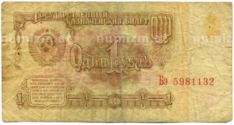 Банкнота 1 рубль 1961 года (Артикул: K12-80355): подробные характеристики, качественные фотографии в высоком разрешении, низкая цена.