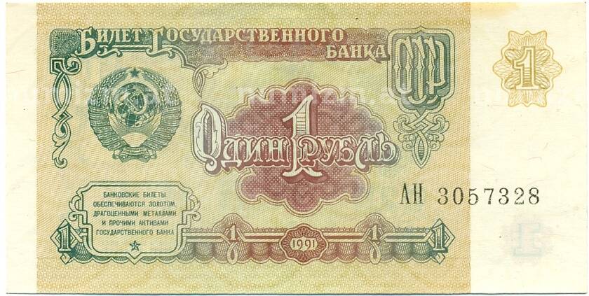 Банкнота 1 рубль 1991 года (Артикул: K12-80360): подробные характеристики, качественные фотографии в высоком разрешении, низкая цена.