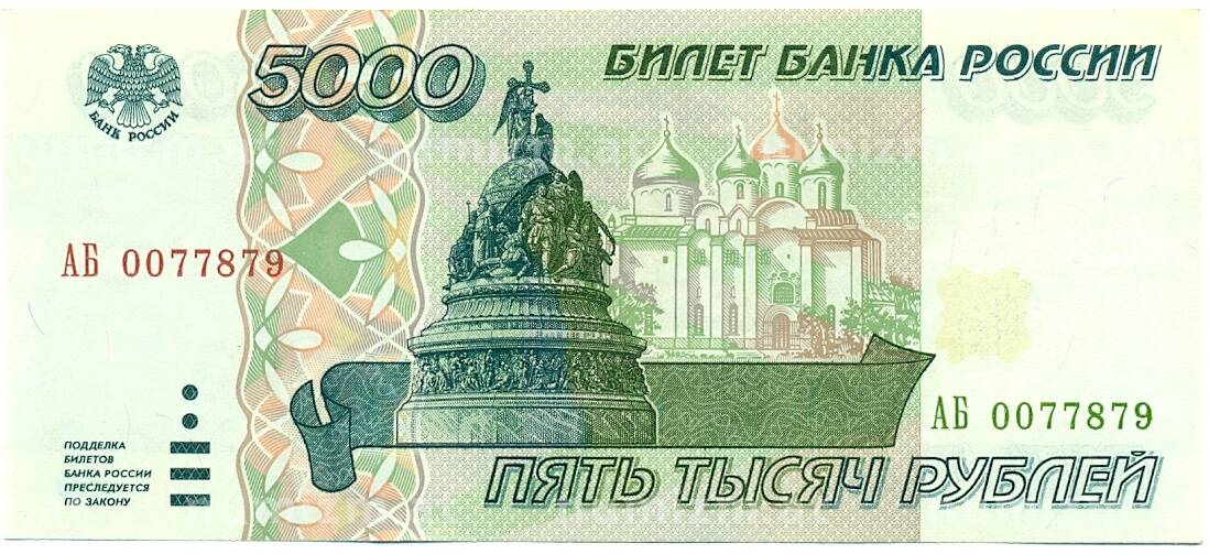 Банкнота 5000 рублей 1995 года (Артикул: K12-80368): подробные характеристики, качественные фотографии в высоком разрешении, низкая цена.