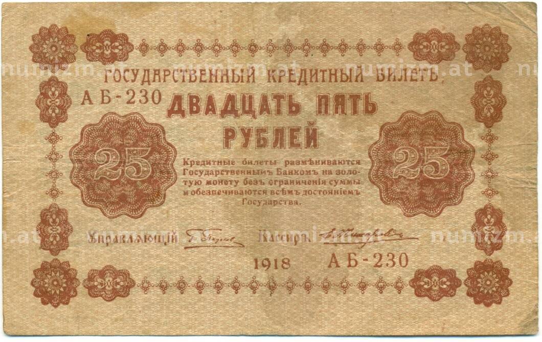20.01.2025Интернет магазин «Нумизмат» предлагает приобрести 25 рублей 1918 года.