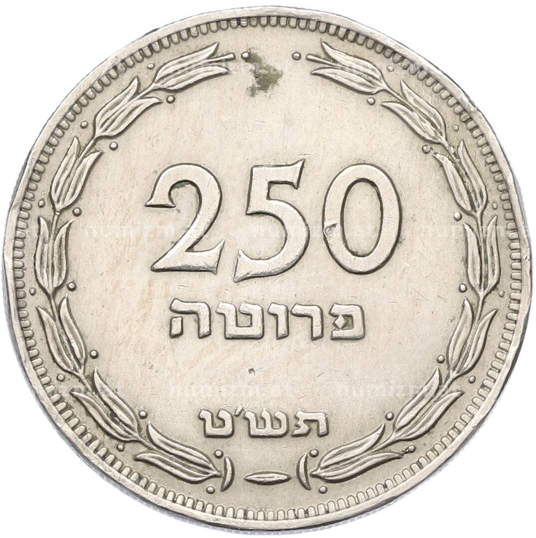 Купить 250 прут 1949 года (JE 5709) Израиль по привлекательной цене можно в нашем интернет-магазине — Вам достаточно оформить заказ на сайте. Все монеты, представленные в каталоге, находятся в наличии на нашем складе.