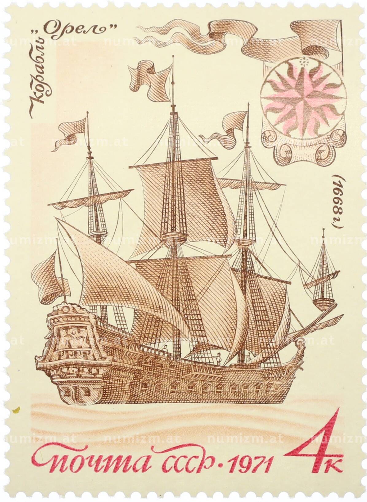 20.01.2025Интернет магазин «Нумизмат» предлагает приобрести Почтовая марка 4 копейки 1971 года «История отечественного флота — Ботик Петра I».