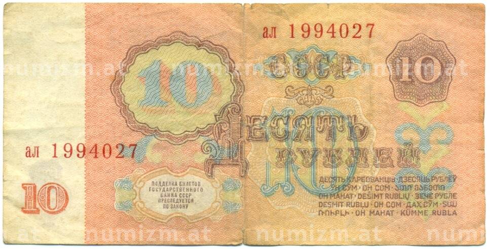 Банкнота 10 рублей 1961 года (Артикул: K12-81319): подробные характеристики, качественные фотографии в высоком разрешении, низкая цена.
