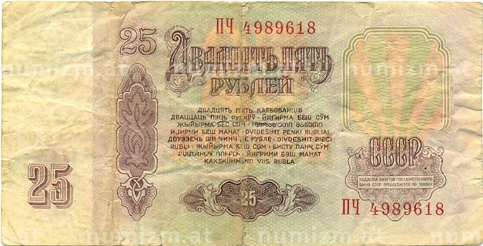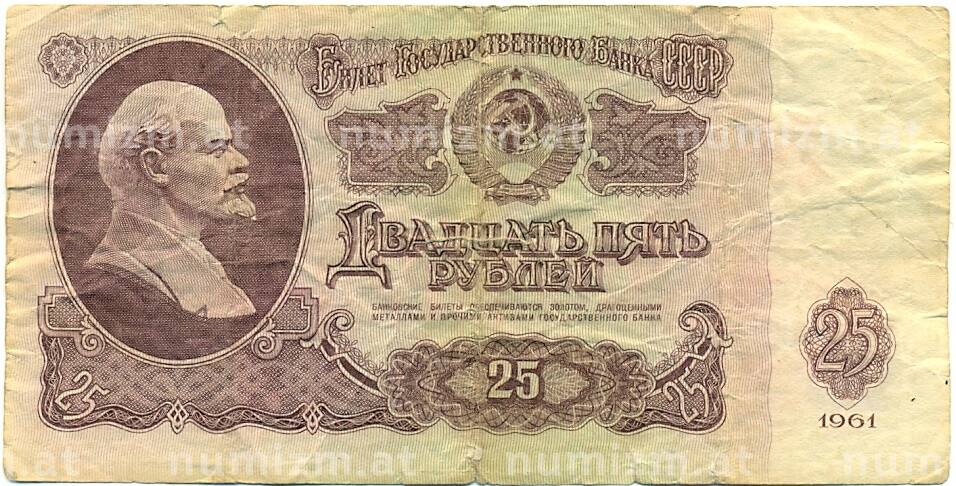 Банкнота 25 рублей 1961 года (Артикул: K12-81322): подробные характеристики, качественные фотографии в высоком разрешении, низкая цена.