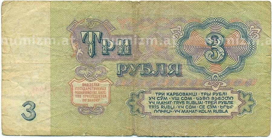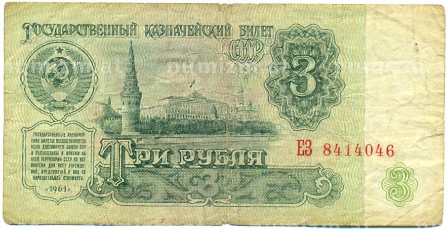 Банкнота 3 рубля 1961 года (Артикул: K12-81326): подробные характеристики, качественные фотографии в высоком разрешении, низкая цена.