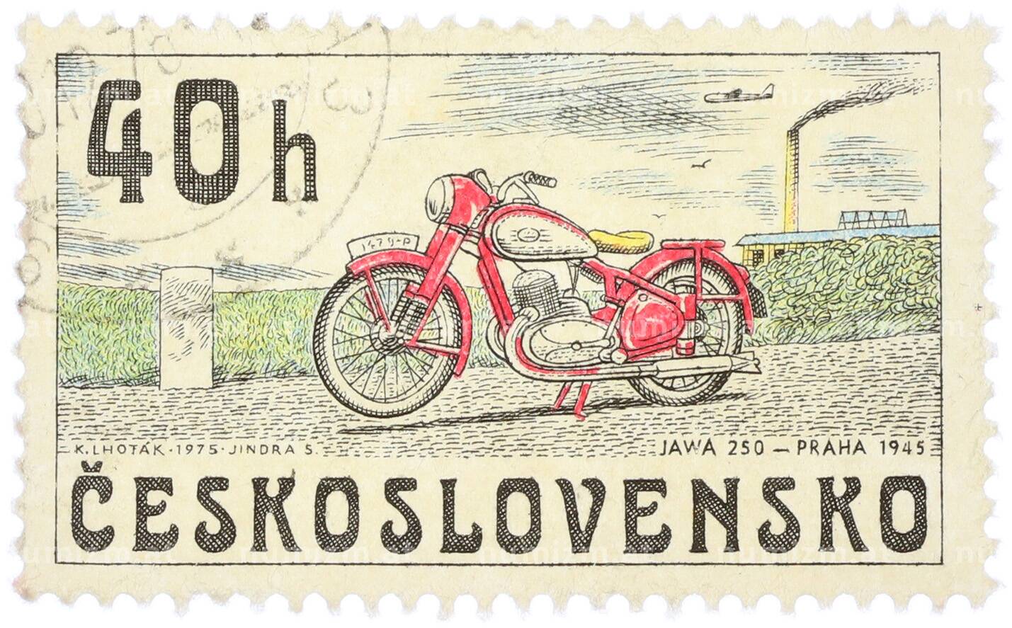 Почтовая марка 40 геллеров 1975 года Чехословакия «Чехословацкие мотоциклы — Ява 250» [Артикул: K12-81836]