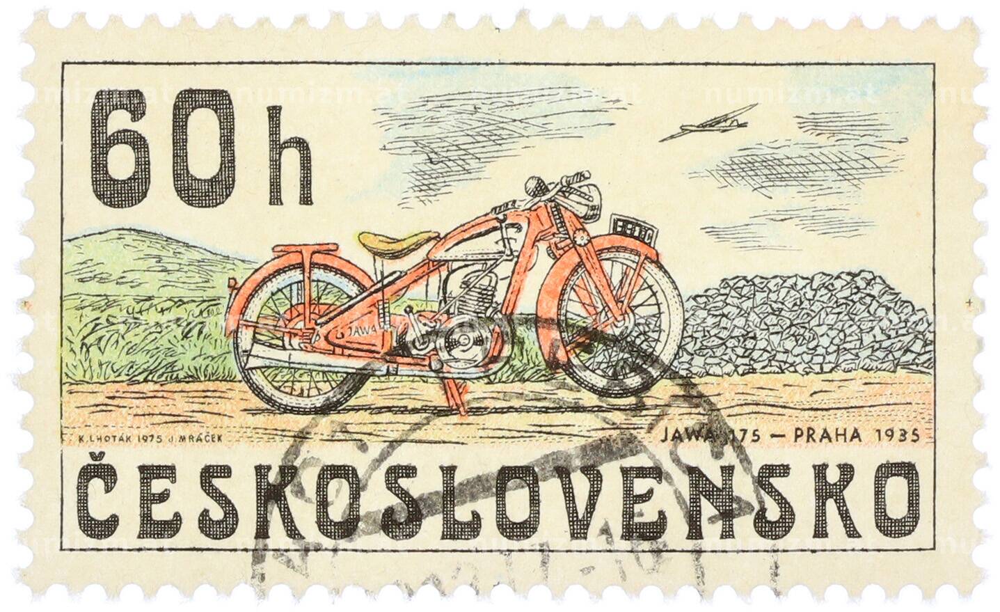 Почтовая марка 60 геллеров 1975 года Чехословакия «Чехословацкие мотоциклы — Ява 175» (Артикул: K12-81838): подробные характеристики, качественные фотографии в высоком разрешении, низкая цена.