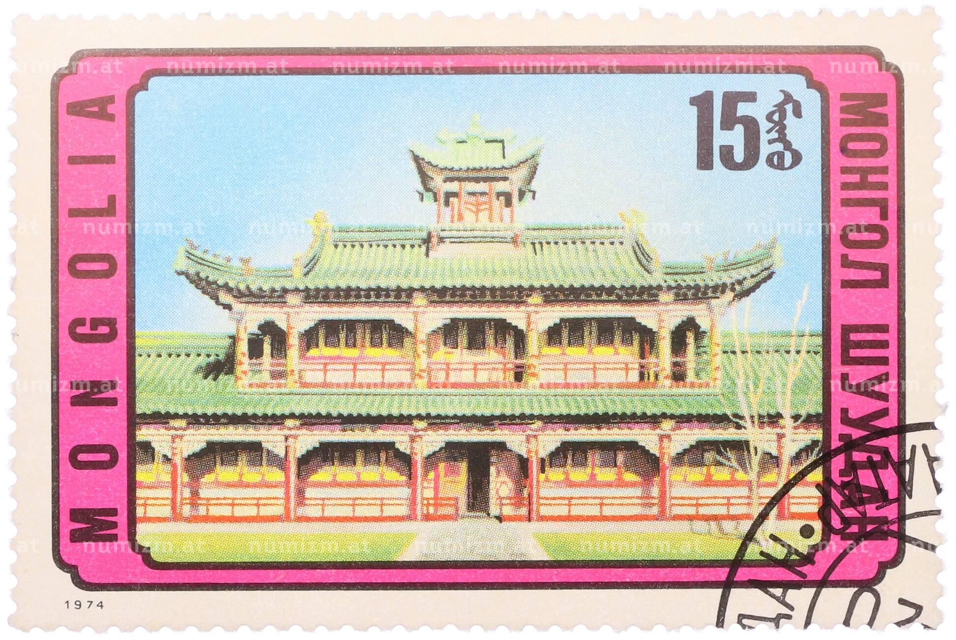 20.01.2025Интернет магазин «Нумизмат» предлагает приобрести Почтовая марка 15 мунгу 1974 года Монголия «Монгольская архитектура — Буддийский храм дворец Богдо-гэгэна».