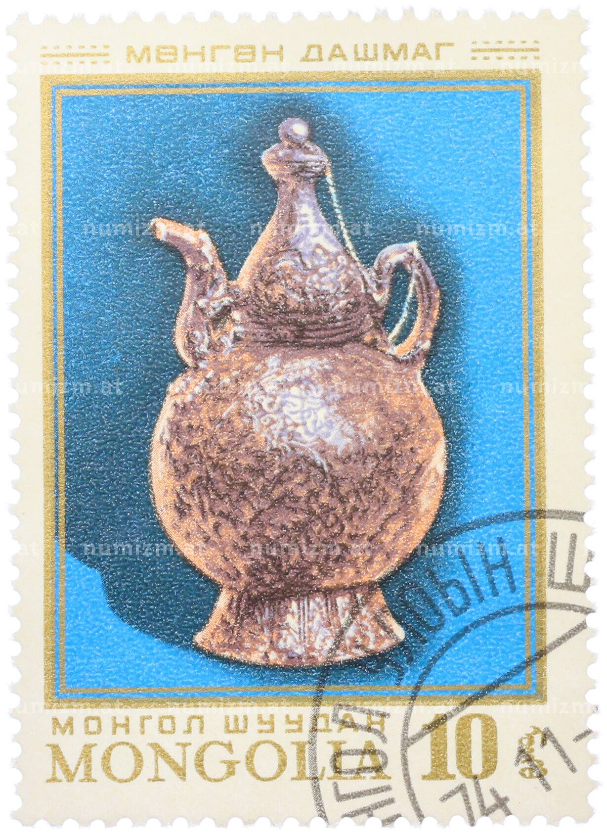Интернет магазин «Нумизмат» предлагает приобрести Почтовая марка 10 мунгу 1974 года Монголия «Монгольское серебряное изделие — Дашмаг».