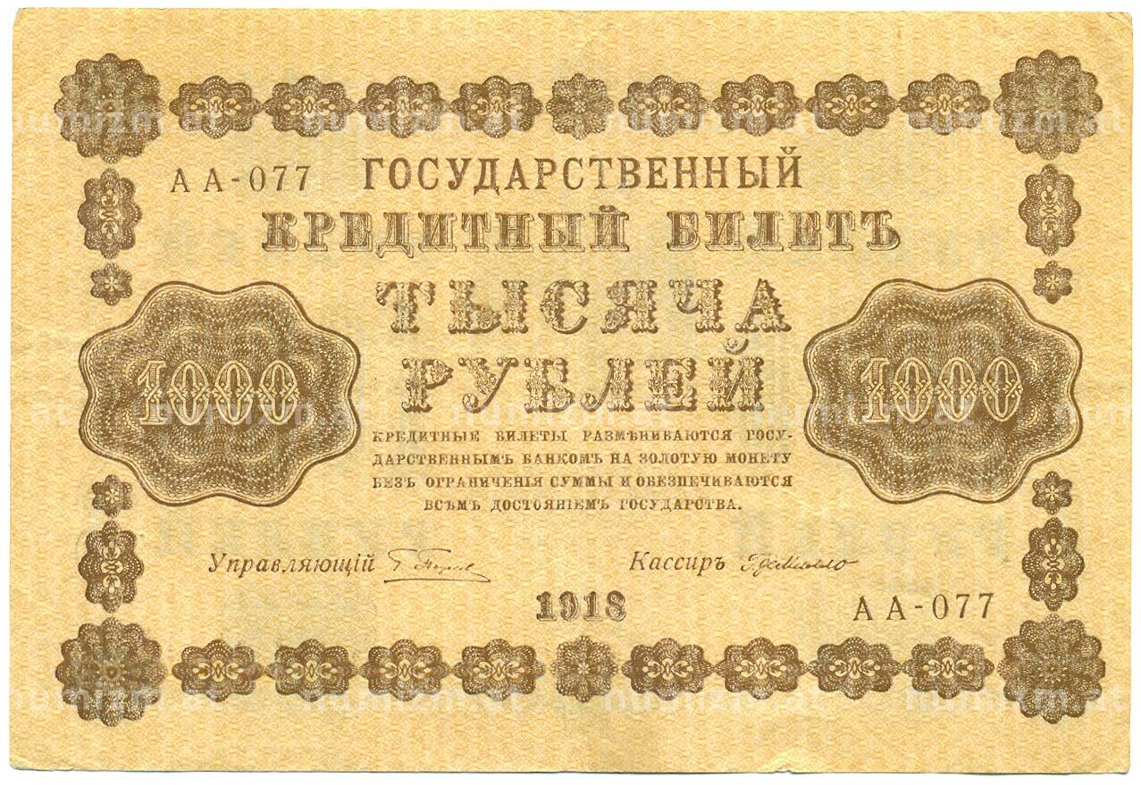 20.01.2025Интернет магазин «Нумизмат» предлагает приобрести 1000 рублей 1918 года.