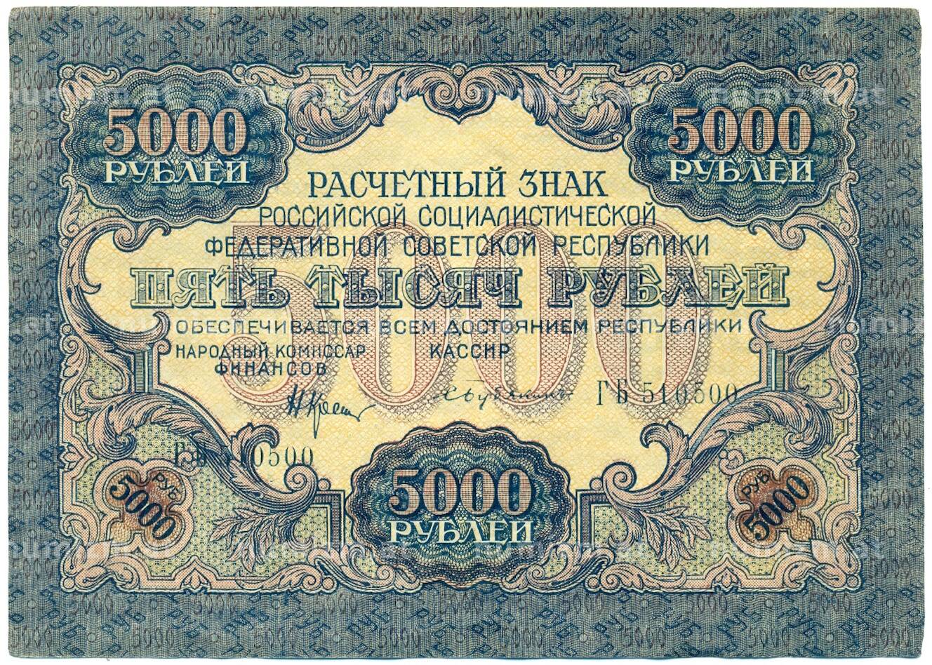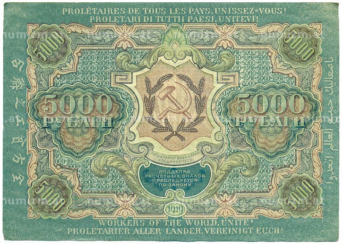 Банкнота 5000 рублей 1919 года (Артикул: K12-84086): подробные характеристики, качественные фотографии в высоком разрешении, низкая цена.