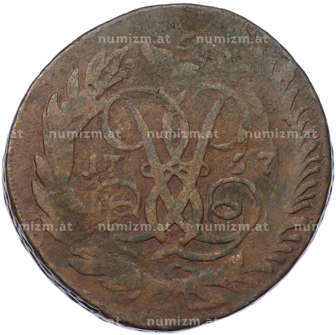 20.01.2025Интернет магазин «Нумизмат» предлагает приобрести 2 копейки 1757 года.