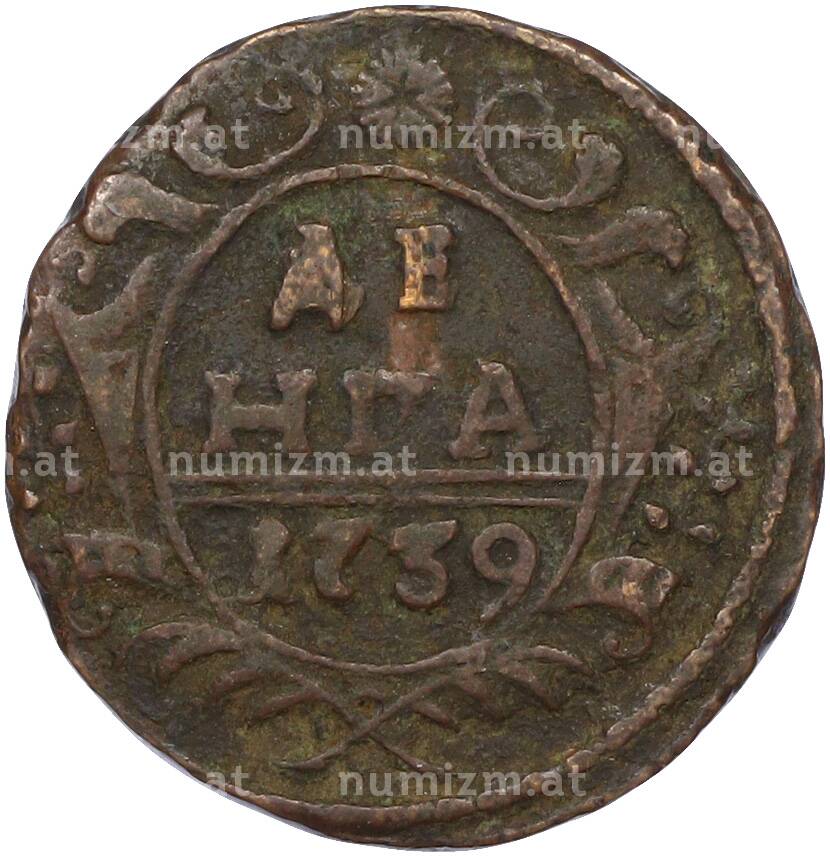 Купить Денга 1739 года по привлекательной цене можно в нашем интернет-магазине — Вам достаточно оформить заказ на сайте. Все монеты, представленные в каталоге, находятся в наличии на нашем складе.