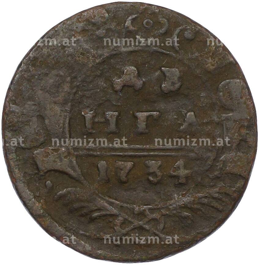 Купить Денга 1734 года по привлекательной цене можно в нашем интернет-магазине — Вам достаточно оформить заказ на сайте. Все монеты, представленные в каталоге, находятся в наличии на нашем складе.