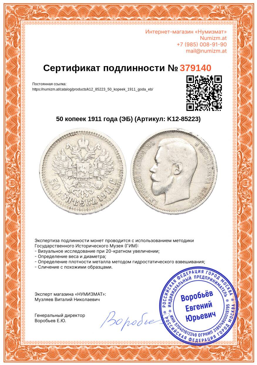 Купить 50 копеек 1911 года (ЭБ) по привлекательной цене можно в нашем интернет-магазине — Вам достаточно оформить заказ на сайте. Все монеты, представленные в каталоге, находятся в наличии на нашем складе.