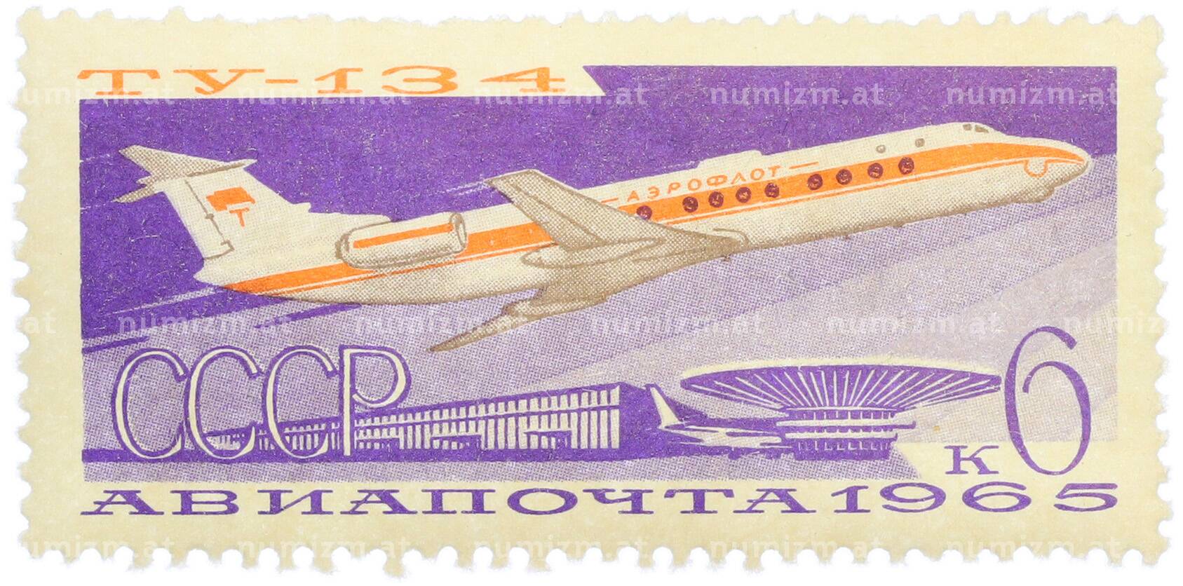 20.01.2025Интернет магазин «Нумизмат» предлагает приобрести Почтовая марка 6 копеек 1965 года «Реактивный пассажирский самолет Ту-134» (Авиапочта).
