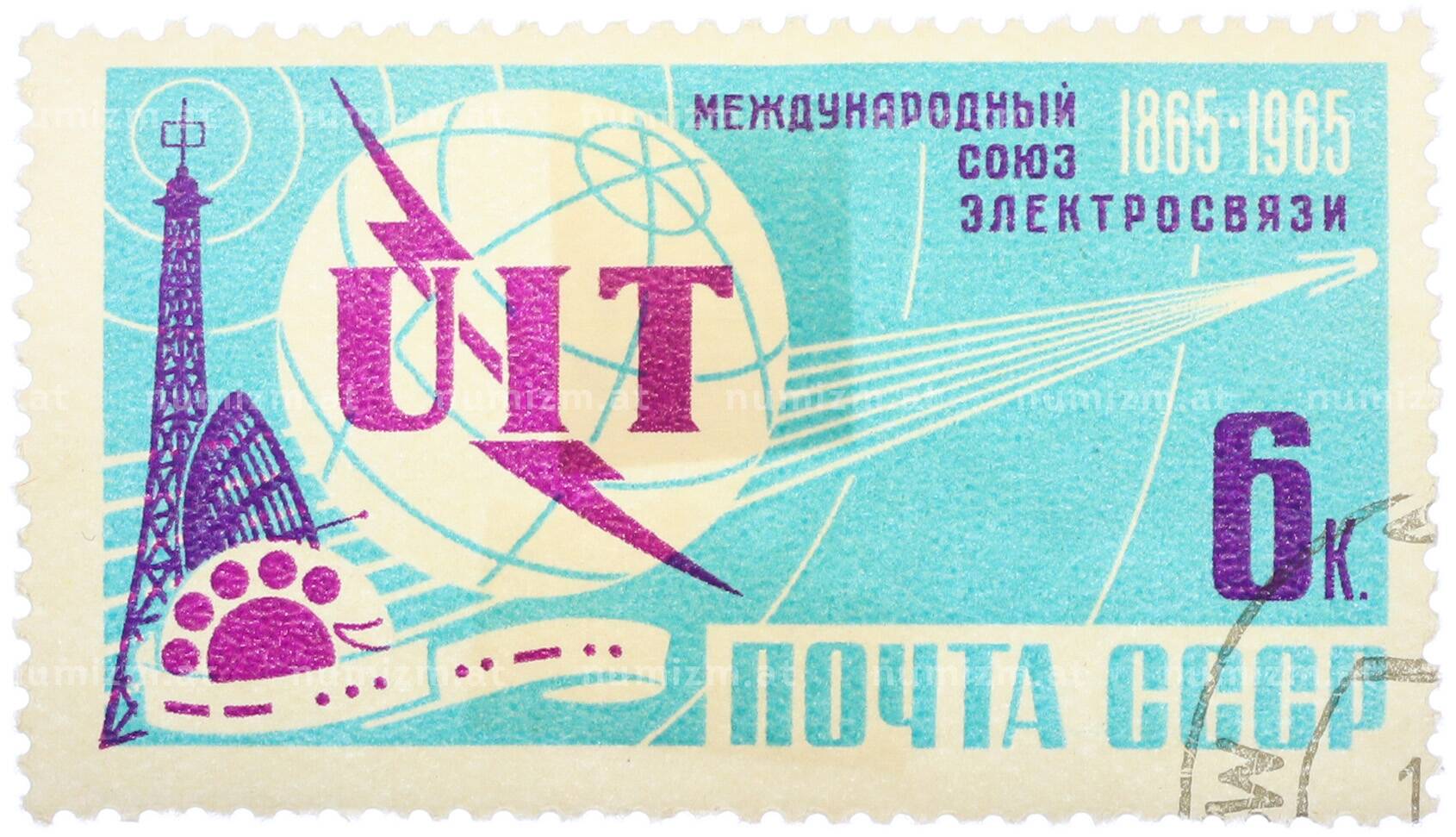 Почтовая марка 6 копеек 1965 года «100-летие Международного союза электросвязи — Эмблема UIT» (Артикул: K12-85721): подробные характеристики, качественные фотографии в высоком разрешении, низкая цена.