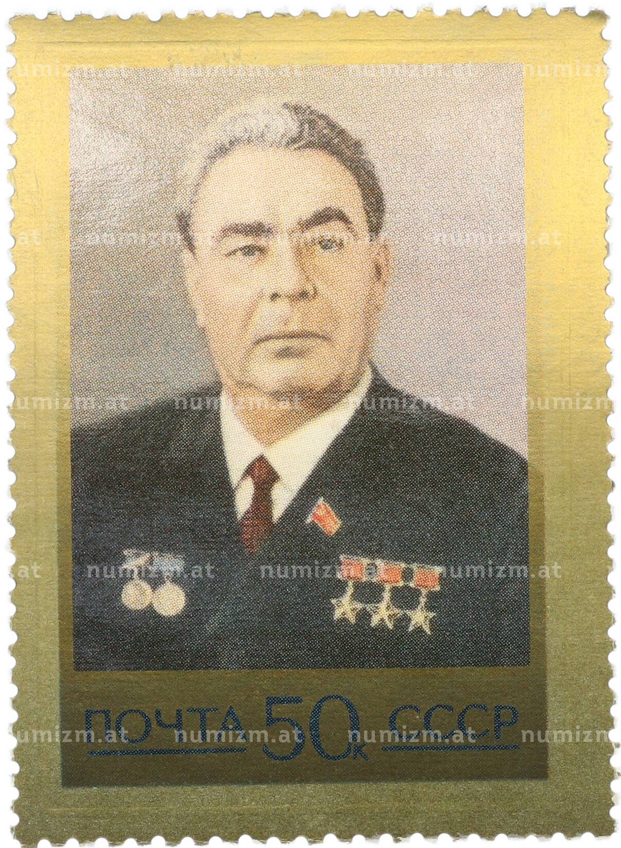 Почтовая марка 50 копеек 1977 года «Принятие новой Конституции СССР — Портрет Брежнева» (Артикул: K12-85795): подробные характеристики, качественные фотографии в высоком разрешении, низкая цена.