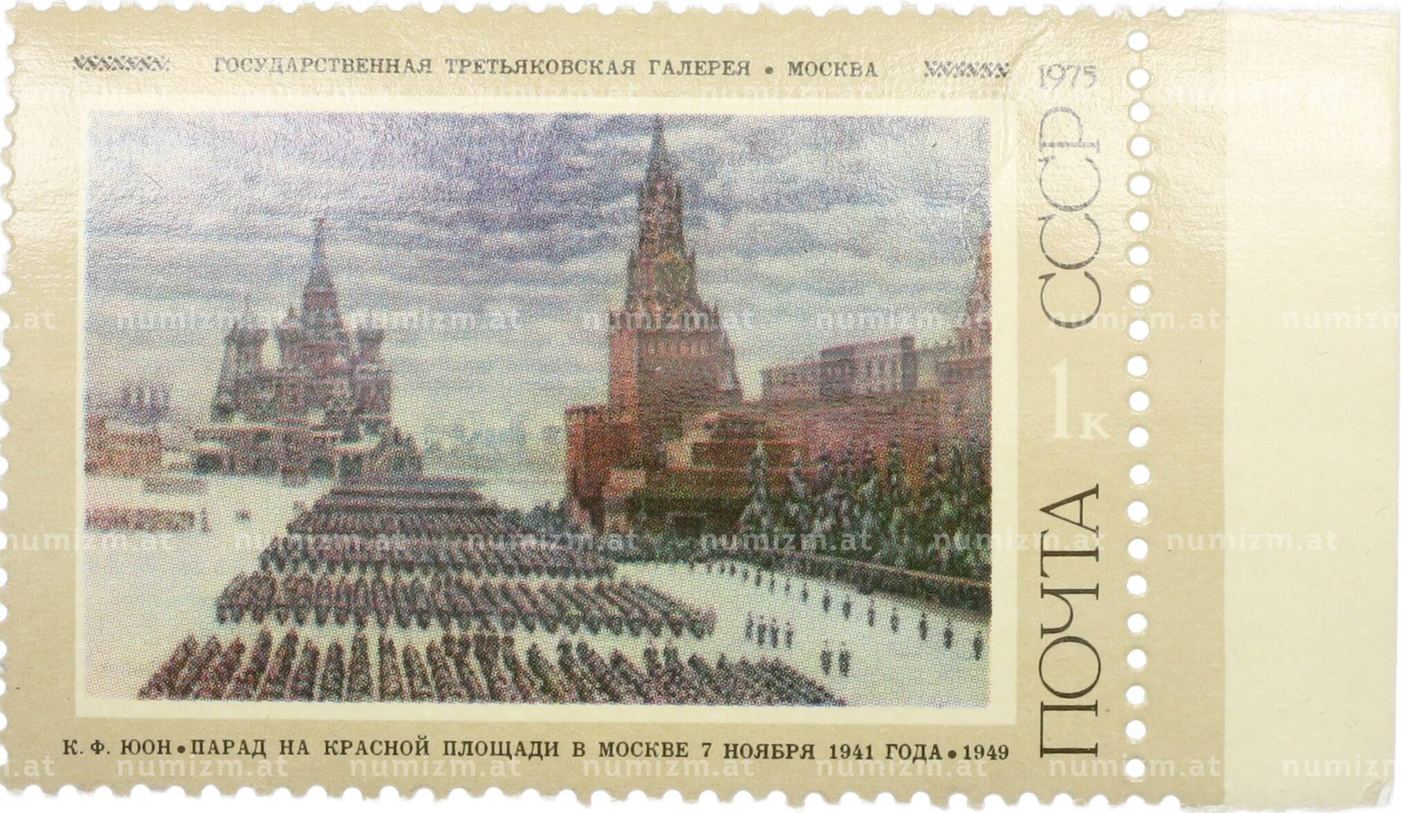 Купить Почтовая марка 1 копейка 1975 года «Советская живопись — Парад на Красной площади» по привлекательной цене можно в нашем интернет-магазине — Вам достаточно оформить заказ на сайте. Все монеты, представленные в каталоге, находятся в наличии на нашем складе.