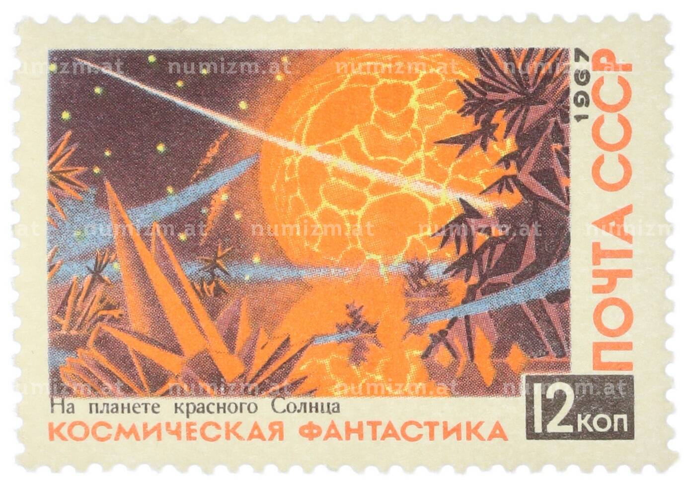 Купить Почтовая марка 12 копеек 1967 года «Космическая фантастика — На планете красного солнца» по привлекательной цене можно в нашем интернет-магазине — Вам достаточно оформить заказ на сайте. Все монеты, представленные в каталоге, находятся в наличии на нашем складе.