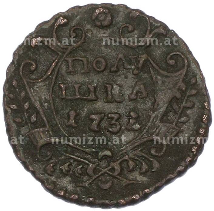Купить Полушка 1731 года по привлекательной цене можно в нашем интернет-магазине — Вам достаточно оформить заказ на сайте. Все монеты, представленные в каталоге, находятся в наличии на нашем складе.