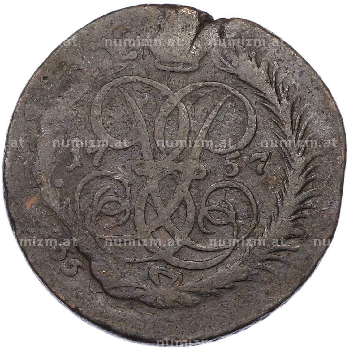20.01.2025Интернет магазин «Нумизмат» предлагает приобрести 2 копейки 1757 года.