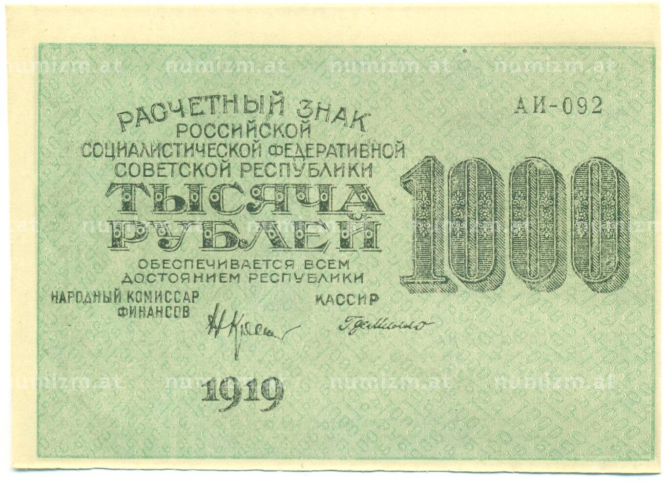 Банкнота 1000 рублей 1919 года (Артикул: K12-87063): подробные характеристики, качественные фотографии в высоком разрешении, низкая цена.