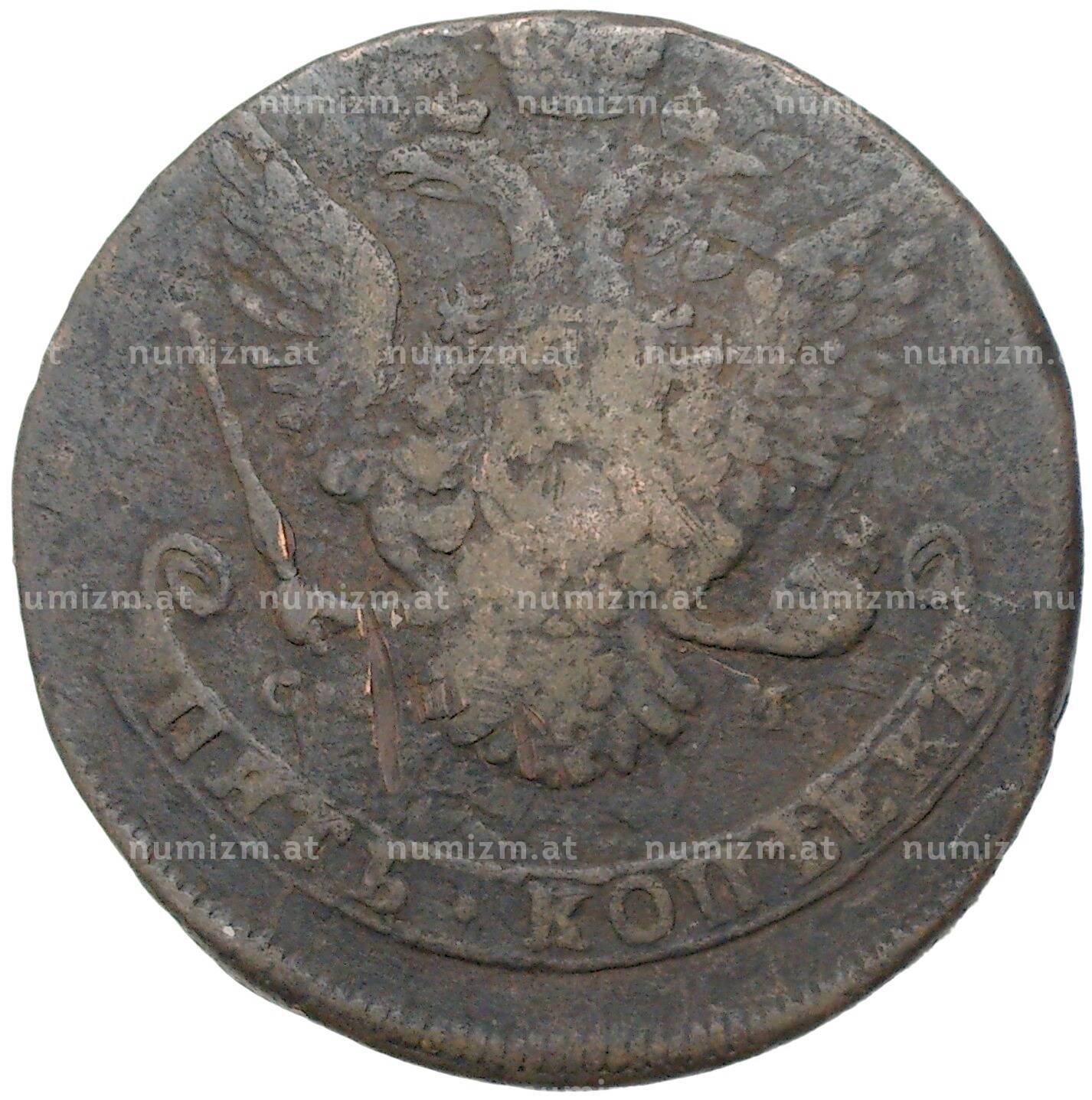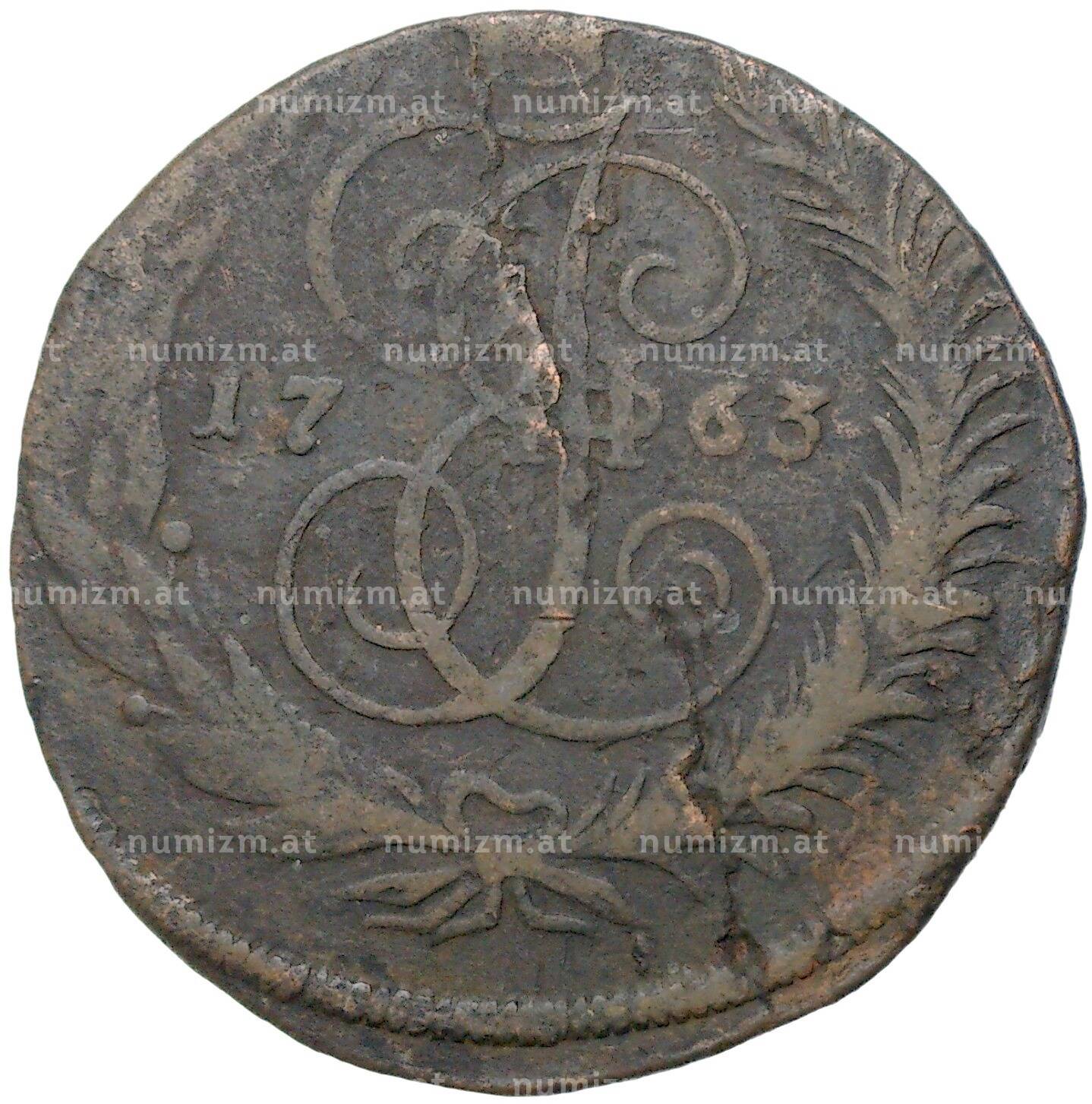 Купить 5 копеек 1763 года СПМ по привлекательной цене можно в нашем интернет-магазине — Вам достаточно оформить заказ на сайте. Все монеты, представленные в каталоге, находятся в наличии на нашем складе.