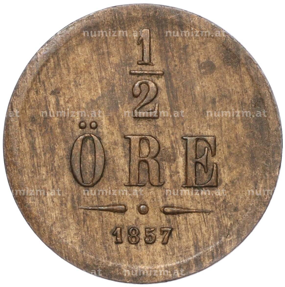 20.01.2025Интернет магазин «Нумизмат» предлагает приобрести 1/2 эре 1857 года Швеция.