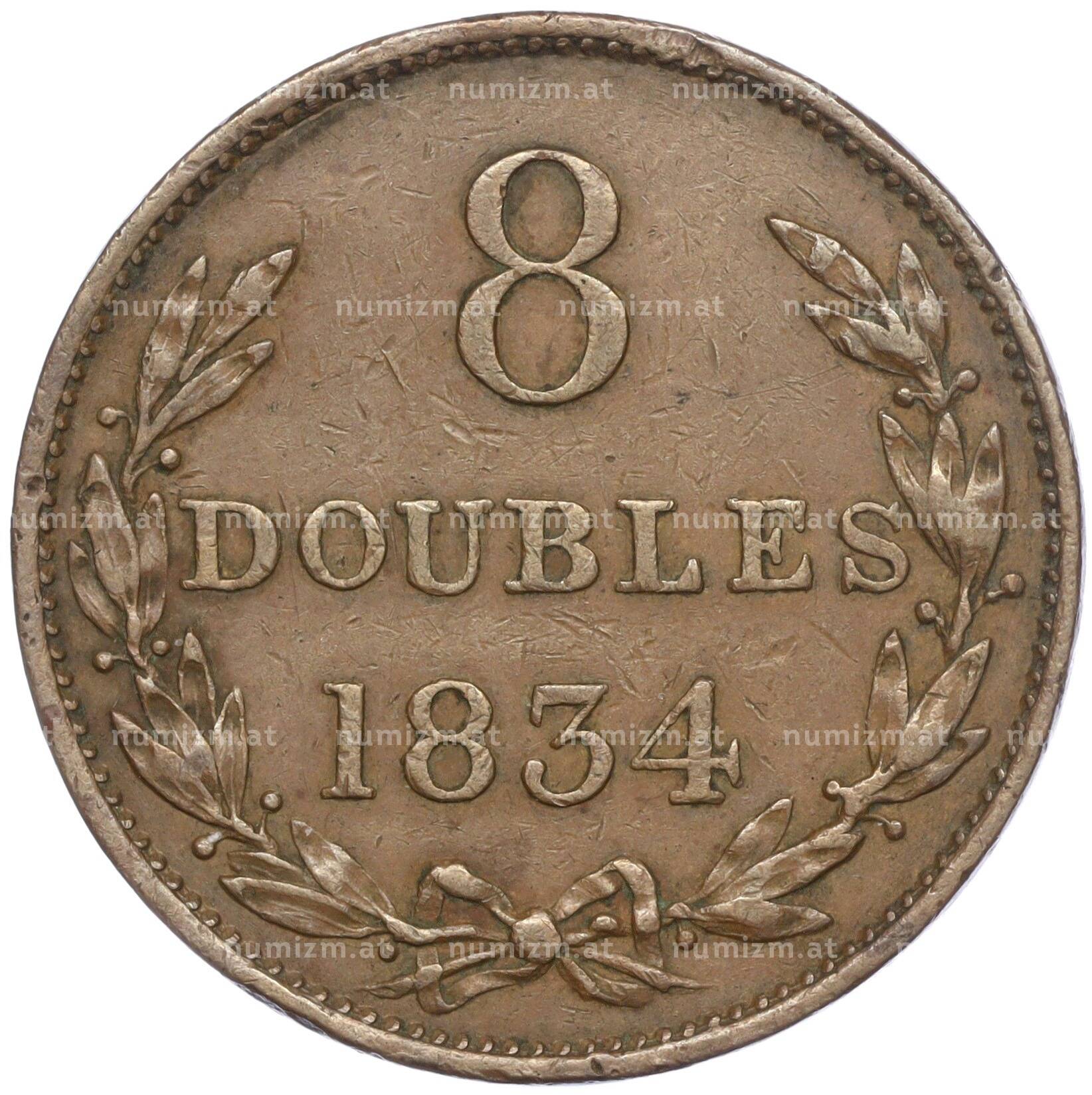 Купить 8 дублей 1834 года Гернси по привлекательной цене можно в нашем интернет-магазине — Вам достаточно оформить заказ на сайте. Все монеты, представленные в каталоге, находятся в наличии на нашем складе.
