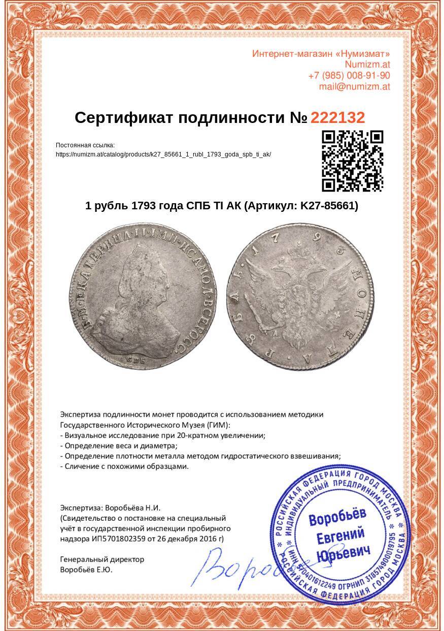 Купить 1 рубль 1793 года СПБ ТI АК по привлекательной цене можно в нашем интернет-магазине — Вам достаточно оформить заказ на сайте. Все монеты, представленные в каталоге, находятся в наличии на нашем складе.
