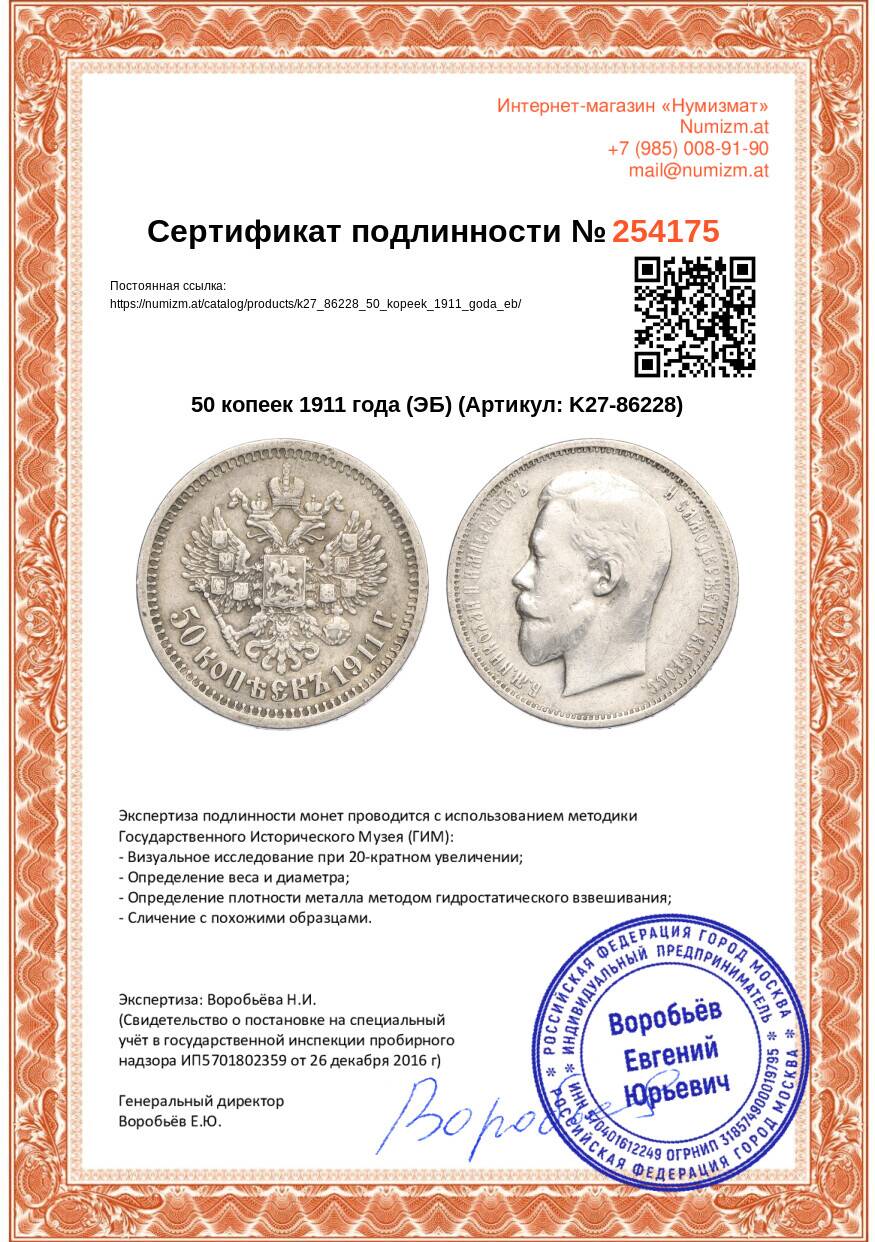 Купить 50 копеек 1911 года (ЭБ) по привлекательной цене можно в нашем интернет-магазине — Вам достаточно оформить заказ на сайте. Все монеты, представленные в каталоге, находятся в наличии на нашем складе.