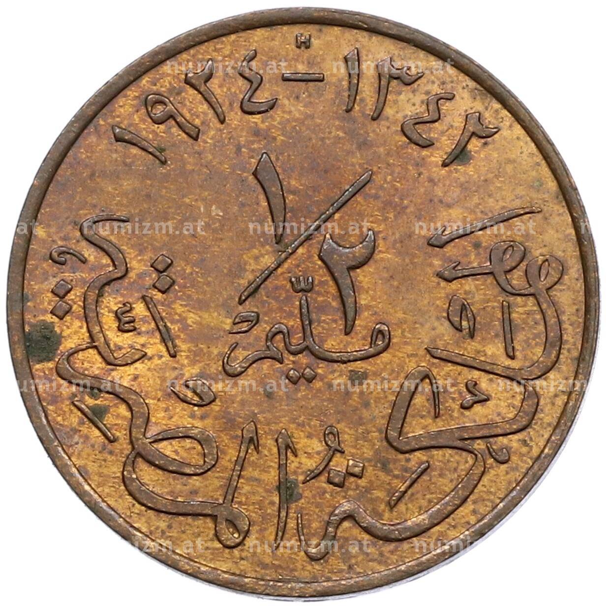 20.01.2025Интернет магазин «Нумизмат» предлагает приобрести 1/2 миллима 1924 года Египет.