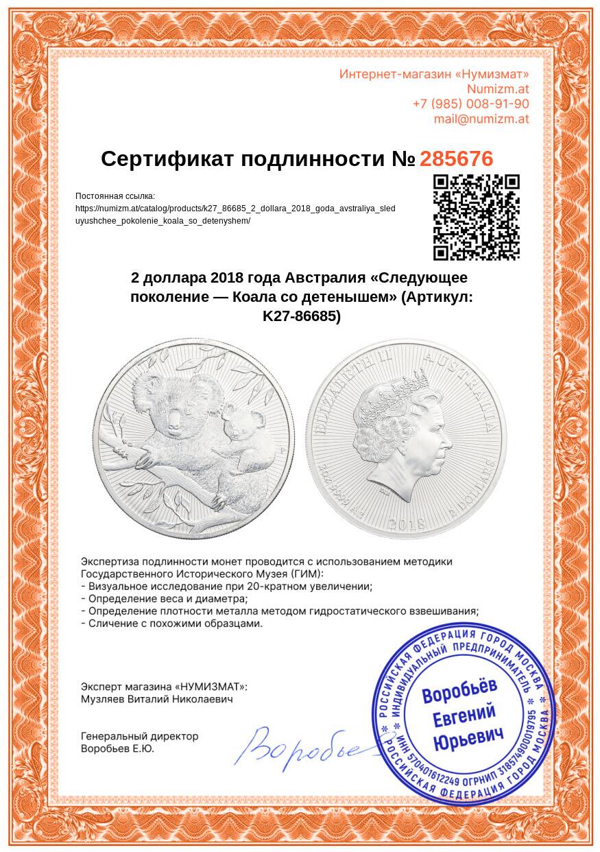 20.01.2025Интернет магазин «Нумизмат» предлагает приобрести 2 доллара 2018 года Австралия «Следующее поколение — Коала со детенышем».
