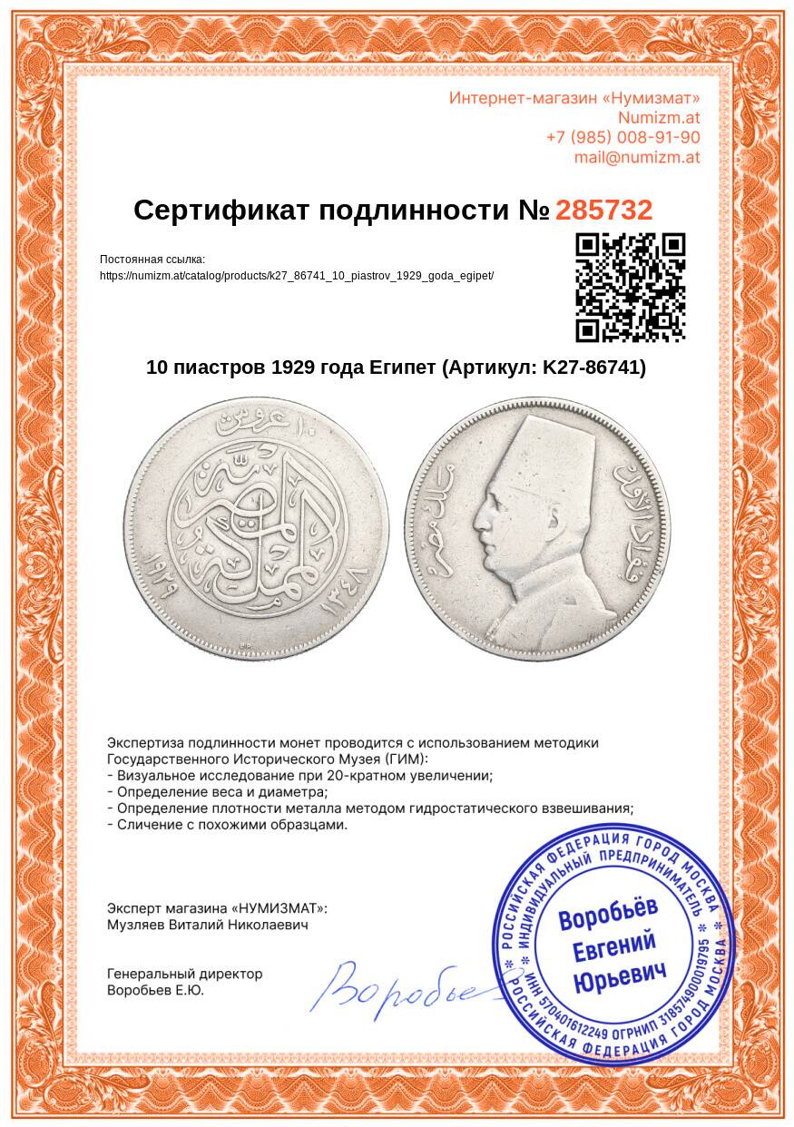 Купить 10 пиастров 1929 года Египет по привлекательной цене можно в нашем интернет-магазине — Вам достаточно оформить заказ на сайте. Все монеты, представленные в каталоге, находятся в наличии на нашем складе.