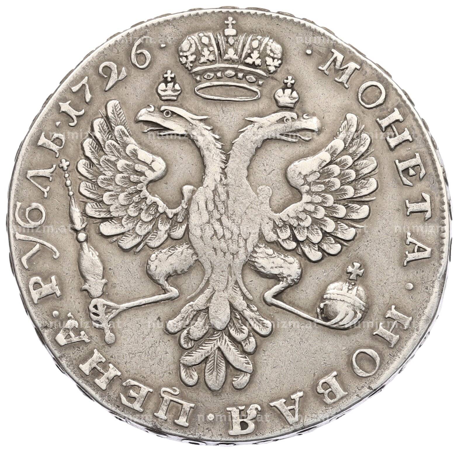 Купить 1 рубль 1726 года по привлекательной цене можно в нашем интернет-магазине — Вам достаточно оформить заказ на сайте. Все монеты, представленные в каталоге, находятся в наличии на нашем складе.