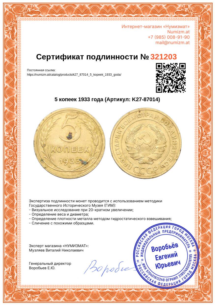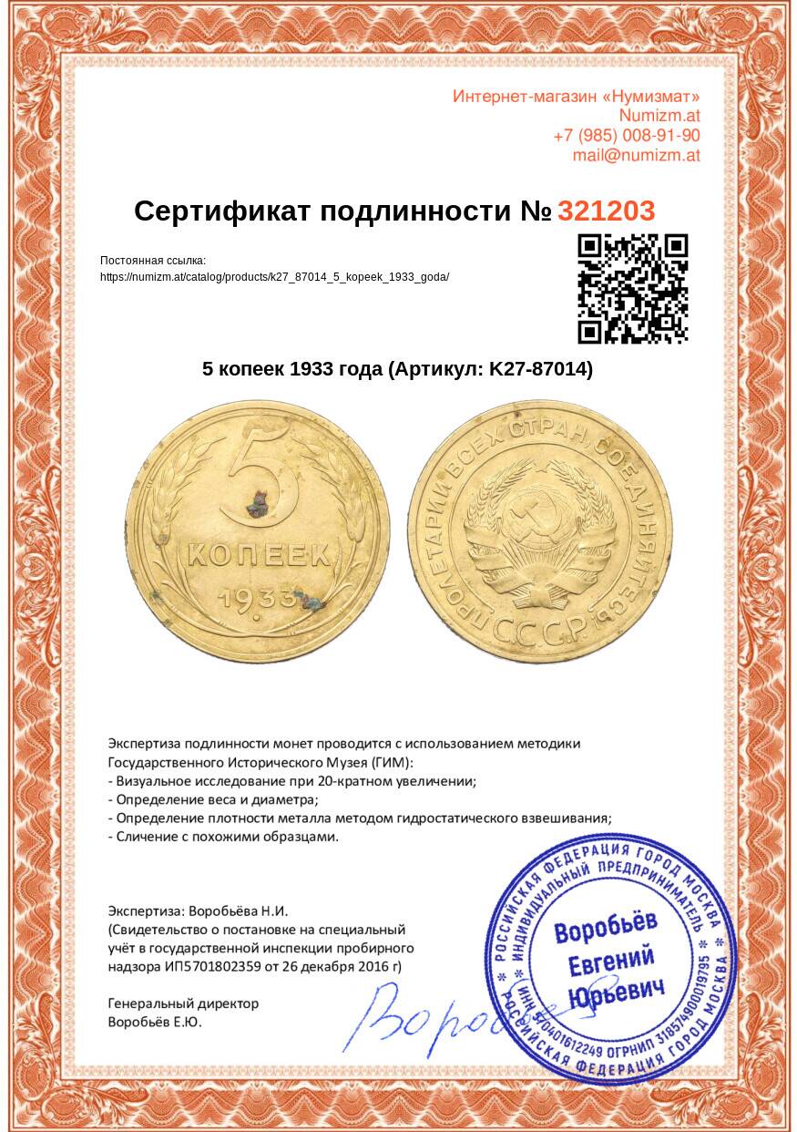 Купить 5 копеек 1933 года по привлекательной цене можно в нашем интернет-магазине — Вам достаточно оформить заказ на сайте. Все монеты, представленные в каталоге, находятся в наличии на нашем складе.