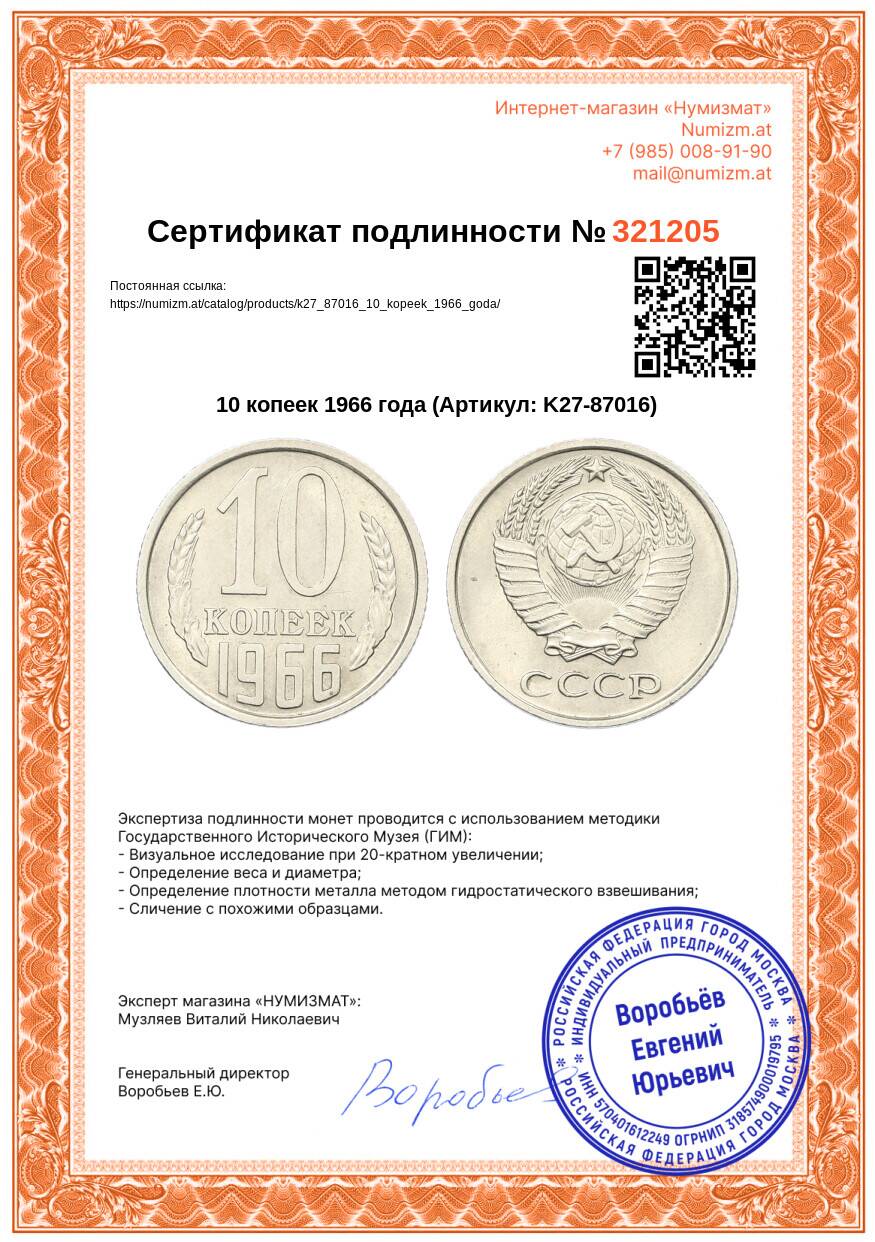 20.01.2025Интернет магазин «Нумизмат» предлагает приобрести 10 копеек 1966 года.