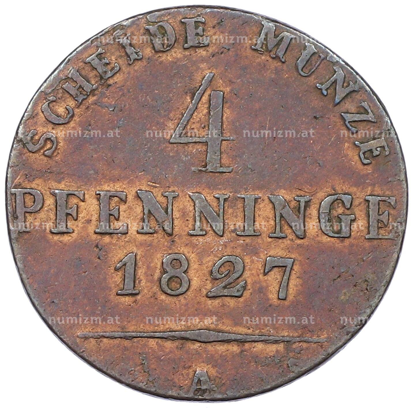 Купить 4 пфеннига 1827 года Пруссия по привлекательной цене можно в нашем интернет-магазине — Вам достаточно оформить заказ на сайте. Все монеты, представленные в каталоге, находятся в наличии на нашем складе.